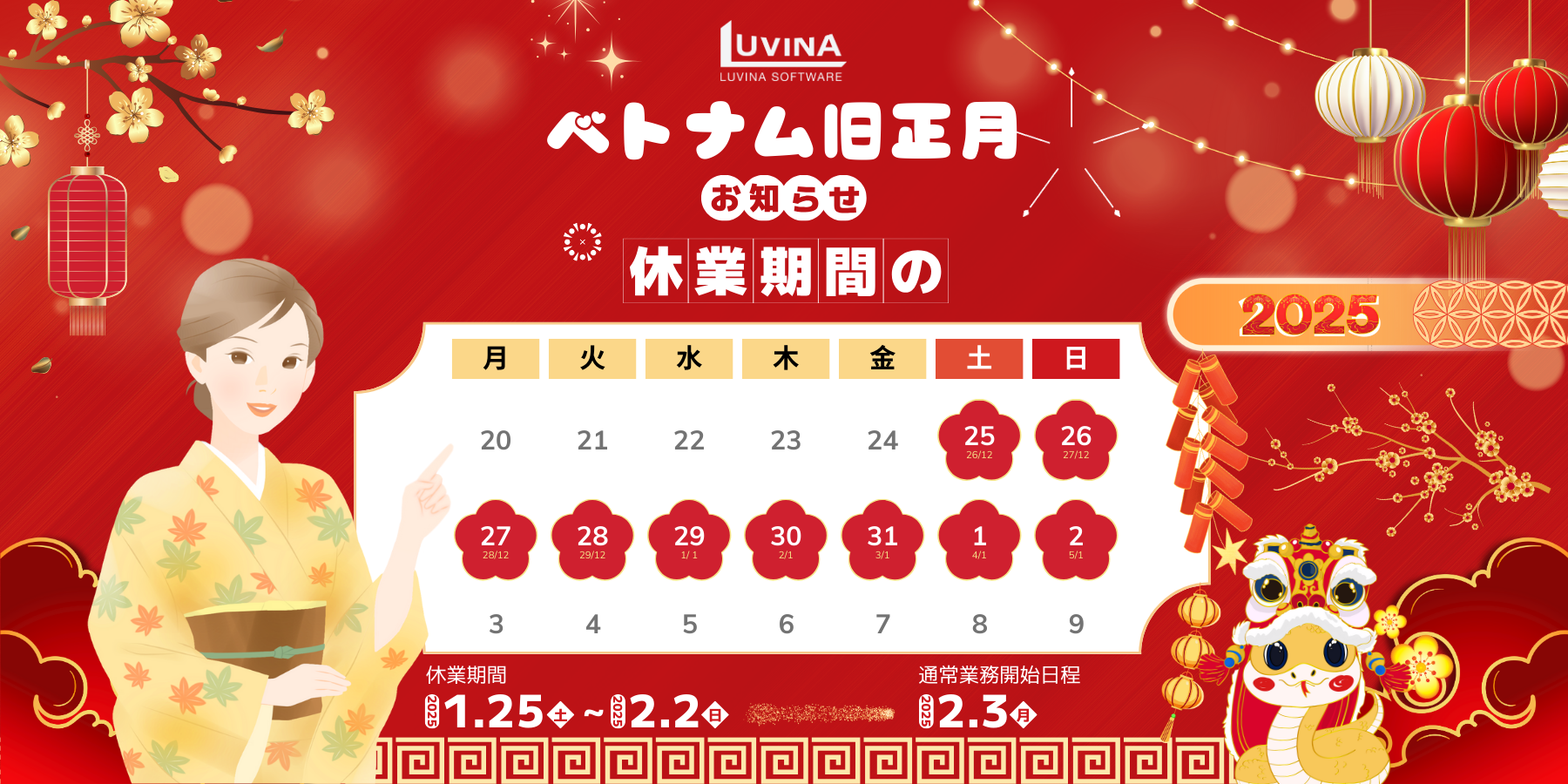 「ルビナソフトウェア」2025年のベトナム旧正月休業期間のお知らせ