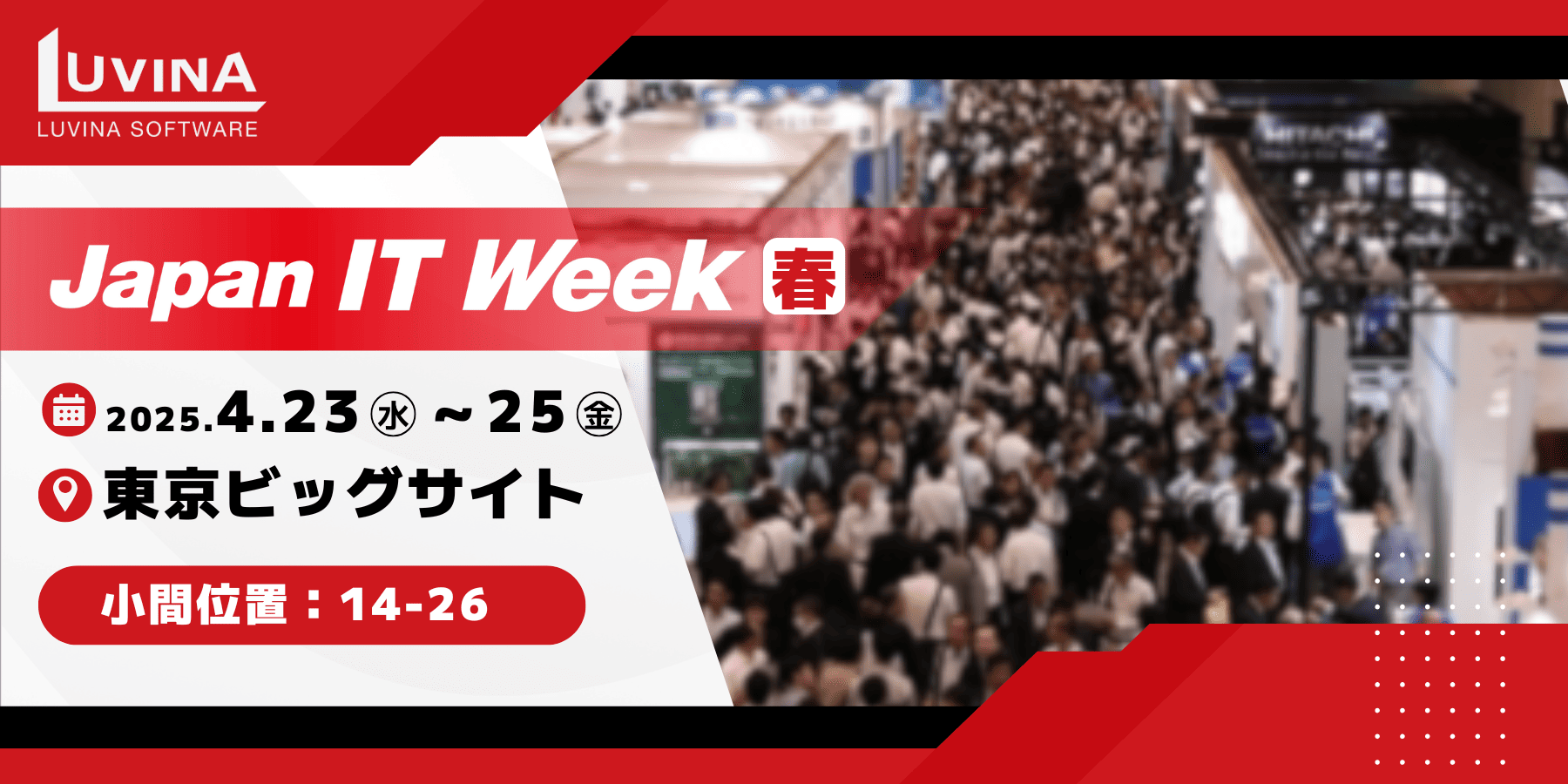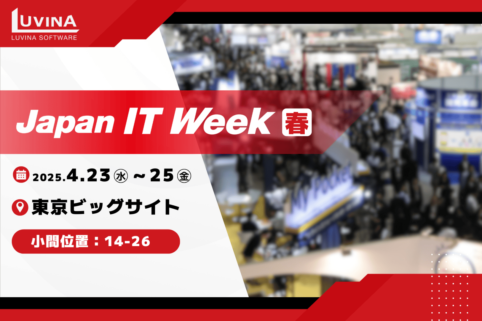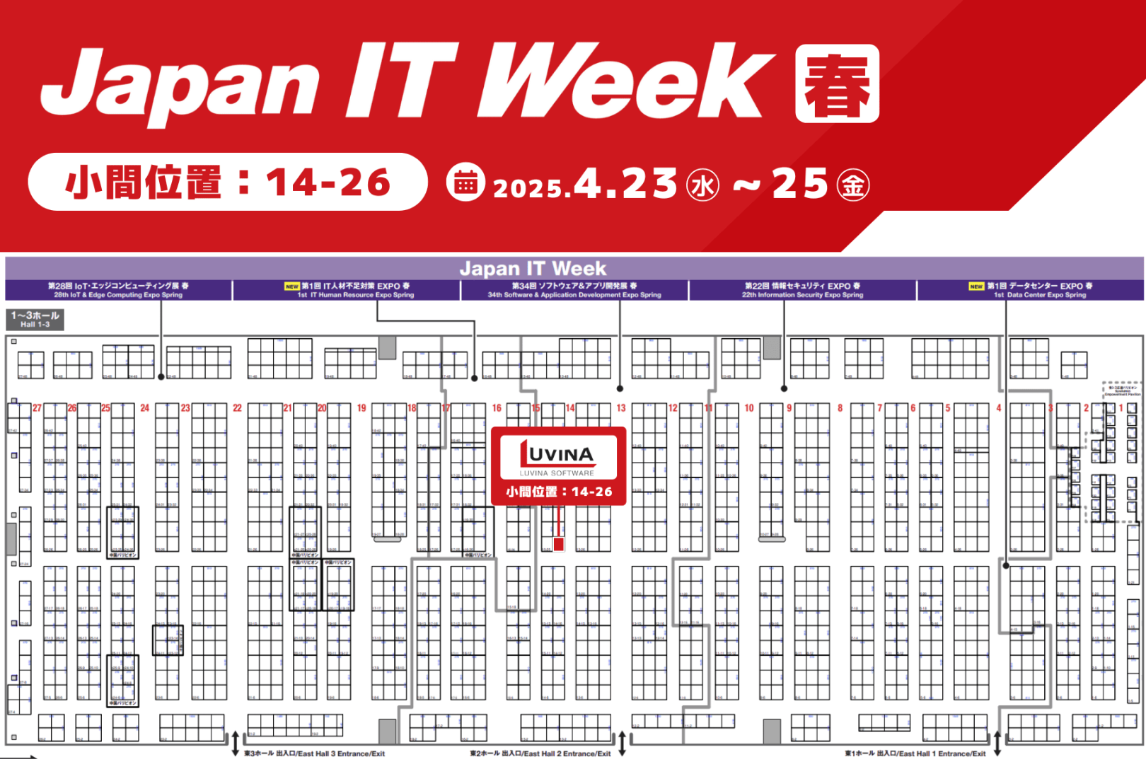 ルビナソフトウェアは、2025年04月23日(水)〜 25日(金)の3日間、東京ビッグサイトで開催される「Japan IT Week 2025 春」に出展いたします。