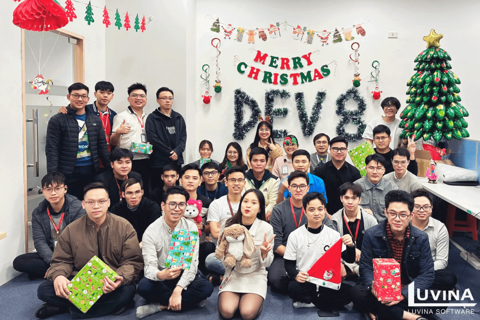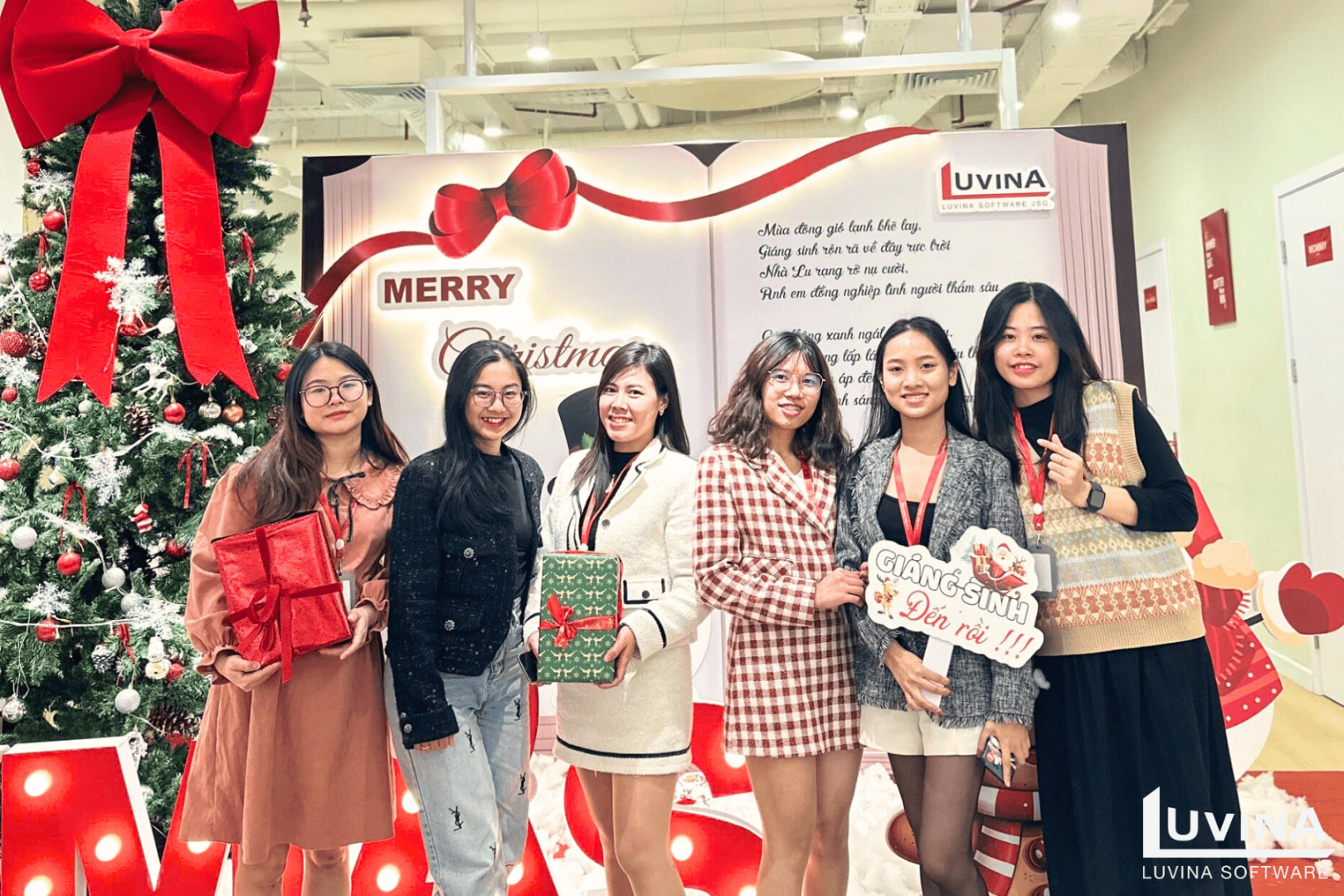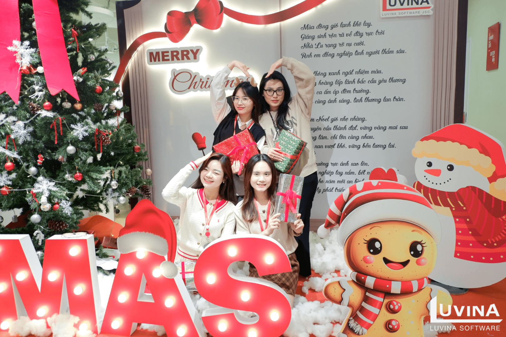ハノイオフィスは、きらめくクリスマスツリーや可愛らしいプレゼントやインスタ映え抜群なフォトスポットで華やかに飾り付けられ、まるで冬のおとぎ話の世界のようです。